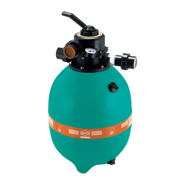 – Válvula seletora de 6 posições de operação, com manômetro de controle e visor de retrolavagem;